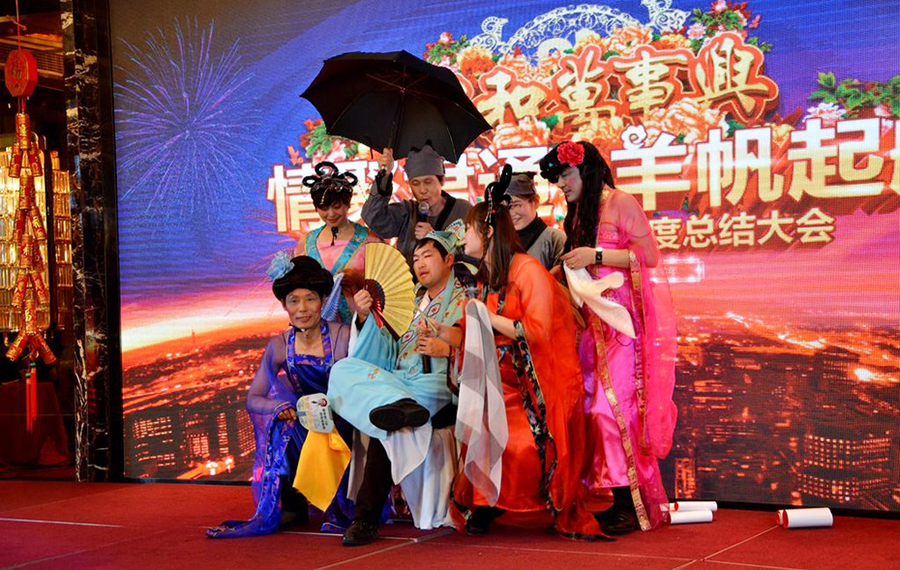| 2015年2月11日,民间俗称的小年,好日子。 立春后的江南阳光灿烂,温暖如春。 太湖畔的同庆楼百合厅流光溢彩,喜气洋洋。身着节日盛装的青春少女鱼贯而入,留下银玲般的笑声,走过她们身边,仿佛被青春撞了一下腰。 君通春晚在欢快的乐曲声中,在员工的欢呼声中拉开了帷幕。 君通总经理尹可珍女士发表了热情洋溢的新年贺词。2000年10月尹可珍女士创立君通公司,几度风雨几度春秋,君通经过十四年发展成为本地IT行业中实力强的企业。熟识我的博友可能都知道,可珍晚常提到的君子兰,我好的女朋友。很开心参加这个欢乐的盛会,虽没有明星大腕,没有星光灿烂,却是每个君通人的倾情演绎,真情流露,好。 ![]() 君通的春晚现场仿佛是一个欢乐的大家庭,演出以部门家庭为单位,更有许多员工可爱的孩子也表演了许多节目。 市场部的美女妈妈带着双胞胎女儿跳起了欢快的《小苹果》