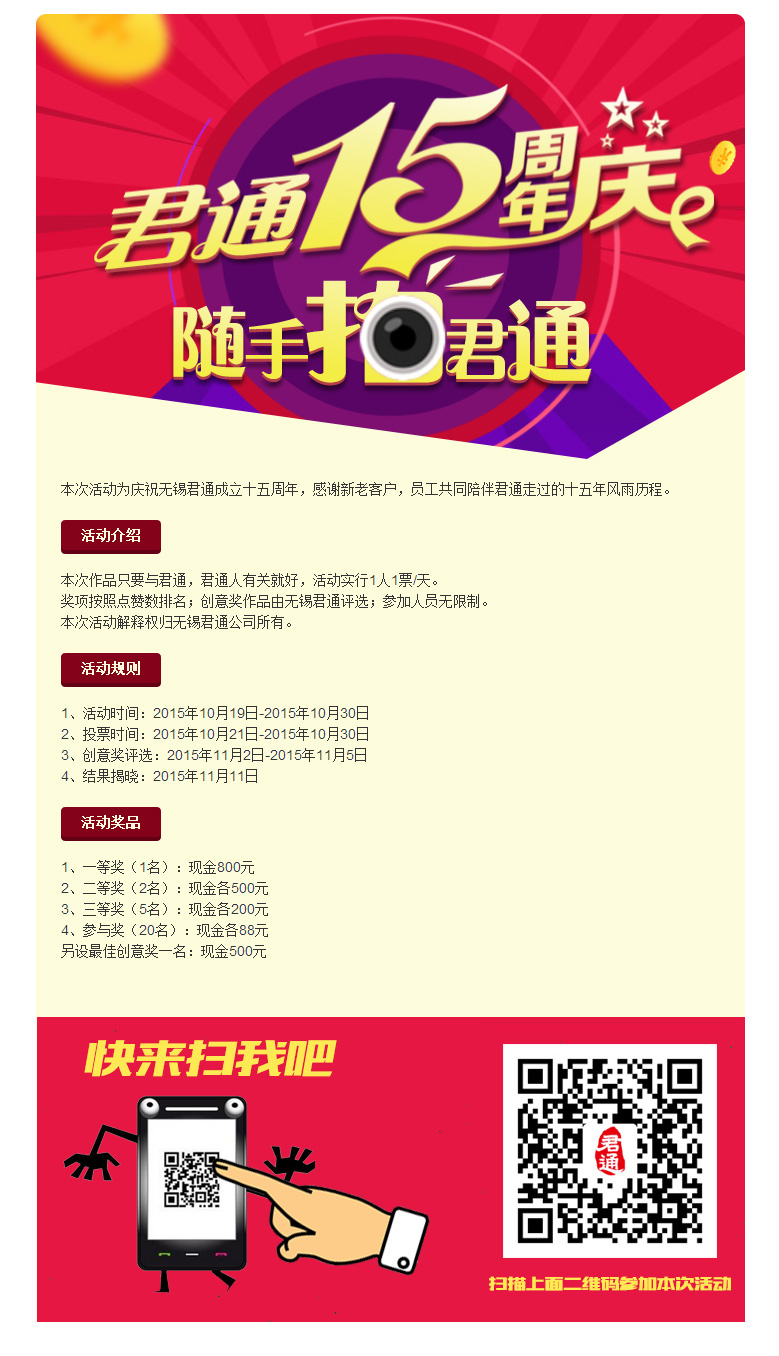 君通15周年“随手拍”活动正式启动啦~~快来报名参与吧~