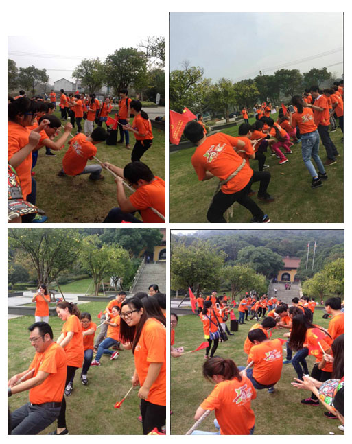照完相之后我们开始了之前预先报好名的项目拔河比赛,轮是电话营销部和技术、客服部门,以每组5男5女进行比赛,经过激烈的拔河比赛,不到三十秒分出了胜负,轮是电话营销部门获胜,然后交换场地,进行第二轮拔河比赛,还是电话营销部赢,以2:0 进入总决赛,小伙伴们都露出了开心的笑容和满脸的汗水,心情无比的喜悦。第二场是市场部对君通苏州分公司团队,市场部获胜,看照片中每个人都使出浑身吃奶的力气投入到拔河比赛中。总决赛,由于刚刚两组比赛获胜方都比较劳累,放到了第二个项目结束后进行。中场十五分钟的休息时间后,所有人员喝水适当休息放松。