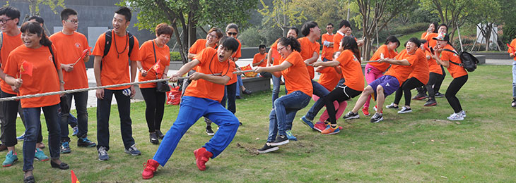这天,阳光明媚,草坪被挤得水泄不通。公司的运动员们个个跃跃欲试,信心十足,我们先是摆好了姿势,成“工”字步式,用脚顶着脚,勾住脚:身子往后倾,双手像铁钳似的,用手抓住大绳。比赛开始,王博裁判员一声令下,参赛队员们手拉着手,脚顶着脚,使出浑身力气,奋力地拔着。绳子中的红布条一会向左,一会向右,好像两只鸭子抢吃一只蚯蚓似的。比赛异常焦灼,市场部获得了本次比赛的胜利,果然姜还是老的辣,胜利的欢呼声响彻了草坪的上空。