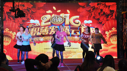 接下来我们技术部门的帅哥美女们闪亮登场,带来小品<我的路>顾健美给我印象深刻,一改往日形象,妖娆的甩头舞,可是用尽浑身力气,获得阵阵掌声,赢得我们君通春晚的佳女演员的称号。