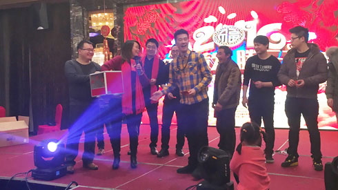 我们在酒桌上聊着天,给舞台上的表演者拍拍照片,看着精彩的演出,吃着水果,一股过年的氛围。随着压轴好戏抽奖活动的登场将年会气氛推向了高潮,现场的抽奖则引爆了人员的热情。去年抽到一等奖,今年也盼着能抽到大奖,可是机会不等人,大奖落到彭郁家,不过没抽到的也不灰心,现场有加奖继续抽,我们桌上10个人中了6个,抽到现金奖的都发红包,红包也抢了不少呢!
