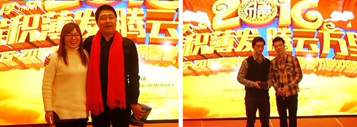 晚会的高潮激动人心的抽奖和颁奖时刻到了,首先颁发的是猴年纪念奖:
