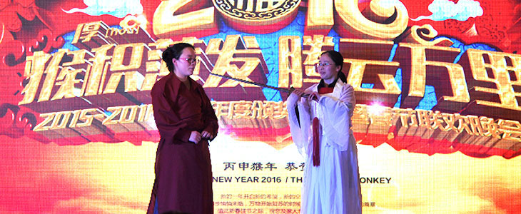 来不及多感慨,行政部的小任、王博、茹燕等带着小品《大话西游》来给大家拜年了: