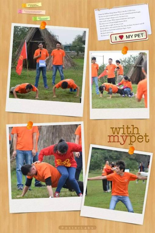接下来的活动便是“桃花几朵开”,在这个游戏中,考验的便是每个人的灵敏程度,康总和朱老板竟然没通过,要接受处罚,俯卧撑来十个先。这个游戏,胖子有胖子的好处了,目标大,别人容易找到你抱团,要不然,俯卧撑对我来说压力不小呀。看着紧紧抱住的人团,心中只觉得一阵暖流经过,能在这样团结的集体中工作,真好!