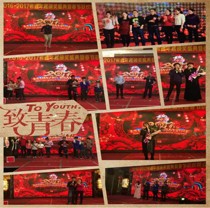下午一点半左右迎来了期待的时刻,是我们的“2016----2017君通年度颁奖盛典暨春节联欢晚会”,首先迎来的是激动人心的颁奖盛典,年度,亚军,季军,年度业绩增长者,员工等都纷纷陆续上台领奖,看到她们一年来的成绩得到肯定,真为她们感到开心,祝愿他们2017年取得更好的成绩。