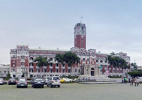 据说总统府的设计风格源于日本,后经上网查证,建筑风格为巴洛克式,只是在台湾日治时期曾做为台湾总督府办公厅舍之用,该建筑由日本设计师设计完成。具有典型的异国特色,虽然我们不曾进入,但是初入眼帘,颇为震撼,其庄严和简洁霸气犹如一只猛兽蹲窝,蓄势待发。别具特色,大家纷纷在此驻足,合影留恋。记录下这一令人激动的时刻。期待马英九的廉政,可以骑着自行车上下班,曾在报纸上看到过,不过后来由于安全等问题中止了,如果一直可以实施下去,这样可以在他上下班的时候看到该是一件多么令人愉快的事情。导游告诉我们平日多有游行示威,前几日还有劳工因为马英九采取养老金八扒政策而闹游行,由此说来,我们必定与总统府有缘,可以在平静的总统府前自在的按动快门,留下美好的瞬间。