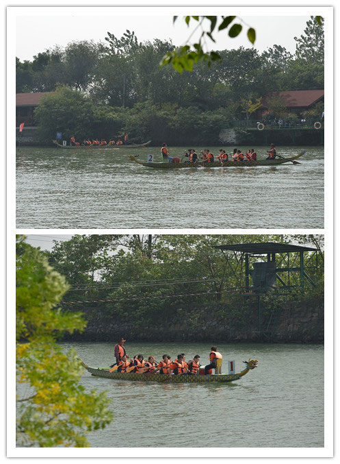 而令人影响深刻的项目莫过于午后的赛龙舟。赛制不复杂:四支队伍,两两PK,每支都有一名鼓手和十名划手参赛,队员们共同努力划向终点,用时短的队伍获胜。在主持人的指挥下,很快四支队伍便集结完毕。稍作讲解后,各队队长带领各自队伍到场地边开始做下水的准备工作。剩下的我们也都没有闲着,围站在湖边的栏杆边为参赛的队伍加油打气。过午的阳光将湖面染上一层金色,微风轻轻摇晃着两岸垂柳纤细的枝条,犹如赛场观众们挥动的手臂?!霸け?,开始”随着裁判的一声令下,两艘龙舟先后离岸,鼓声咚咚、号子高昂,龙舟上的君通健儿们如同出征的战士一样,个个神采奕奕、狠劲猛划、奋力冲刺。岸上人群也山呼海啸滚起阵阵“加油”声浪。终于一条龙舟遥遥,看得岸上的人不由欢呼雀跃击掌喝彩。龙舟赛在欢乐的气氛中结束了,但在每一个人的心里都留下了一个启示:互联网行业里百舸争流,公司像一艘船承载着我们每一个君通人的希望和理想,只要我们每一个人都握紧手中的桨,坚定不移直指梦想的方向,这艘船必定能迎风劈浪驶向辉煌。
