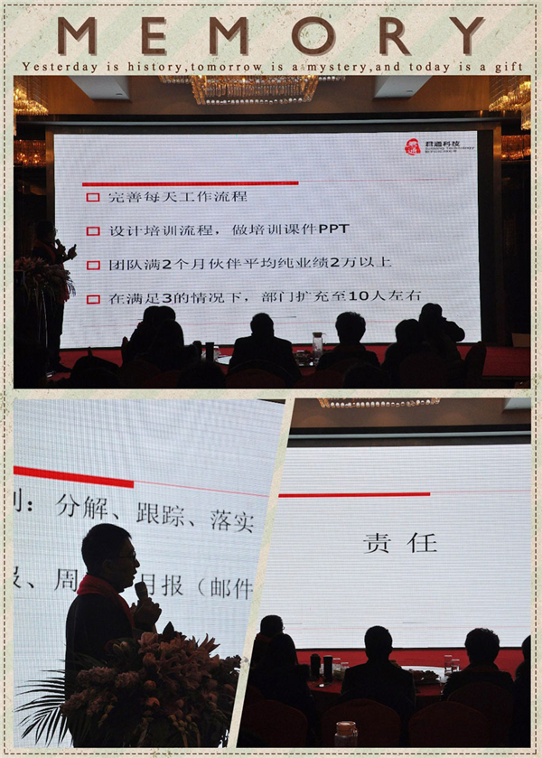 2017年,在市场竞争日益激烈的情况下,君通的销售精英们仍然呈逆势上扬之态,完成了2000万的骄人业绩。不仅如此,赵浦一组在外贸快车这个产品的销售中也夺得全国个人销售,得到行业广泛认可。各个大区的经理过去一年的业绩和存在的问题都做了详细的分析。制定新目标,确定新方向是前提,狠抓制度与管理,打造服务口碑是方法,而产品和销售团队始终是公司事业的根本,期待2018年,在各位领导的带领下,无锡君通能有更辉煌的成绩。