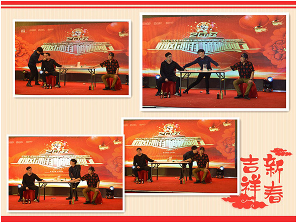 颁奖典礼结束之后,君通春晚紧接着呈现给大家,热情奔放的,动感十足的,搞笑幽默的,感人肺腑的,精彩节目在君通晚会上一一呈现,整场晚会阵阵掌声,笑声连连。