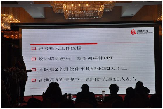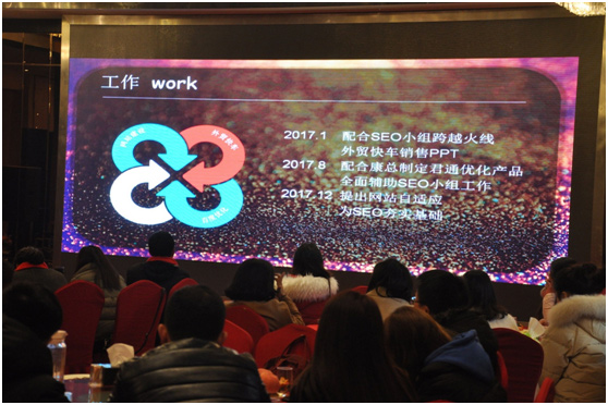 其次是邓总,乔总及各部门负责人对2017年的工作进行了细致的总结,在指出工作中的不足之处的同时对2018年个人及部门进行了工作的规划。相信依靠君通家人的凝聚力,在各高层领导及康总,尹总的带领下,努力前行,坚信2500W的目标定会实现。
