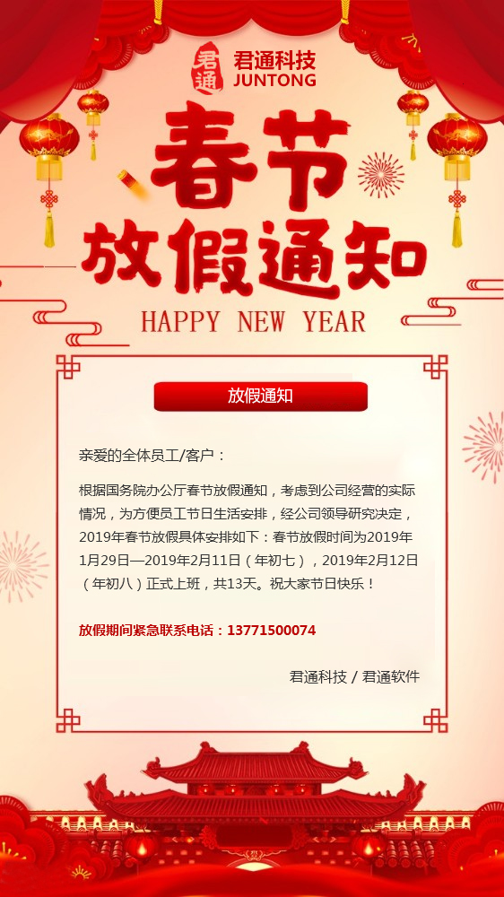 无锡君通春节放假通知