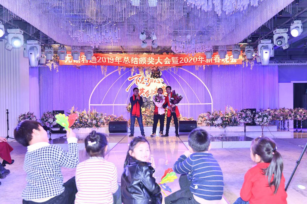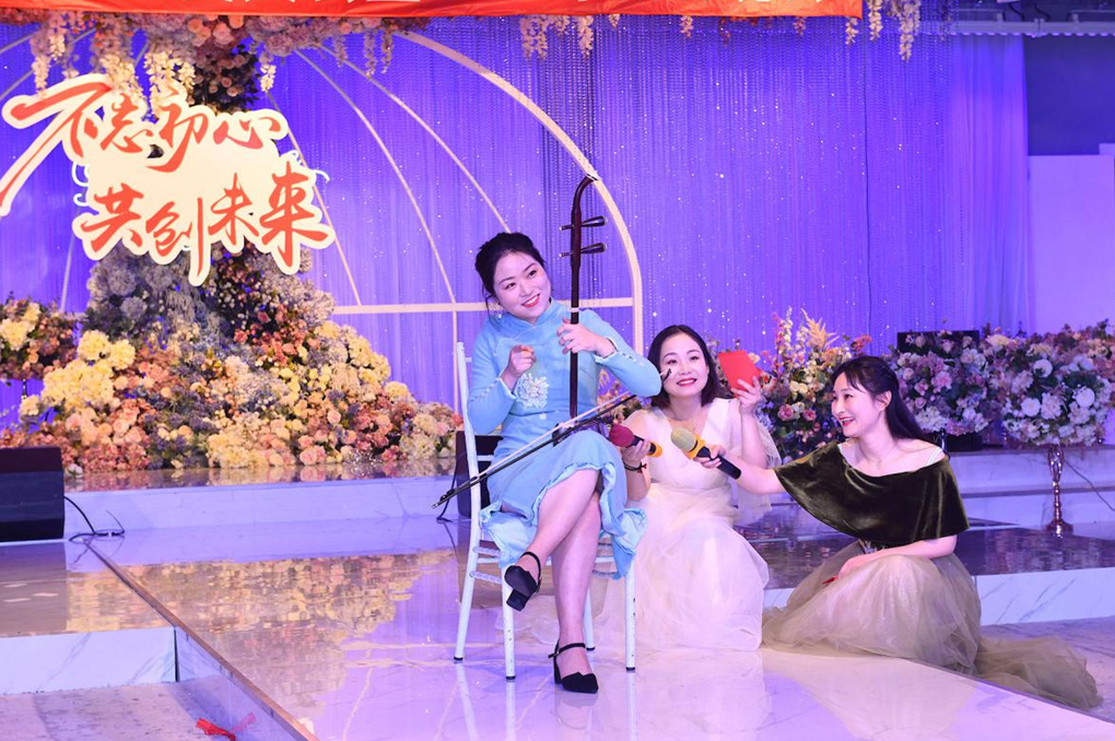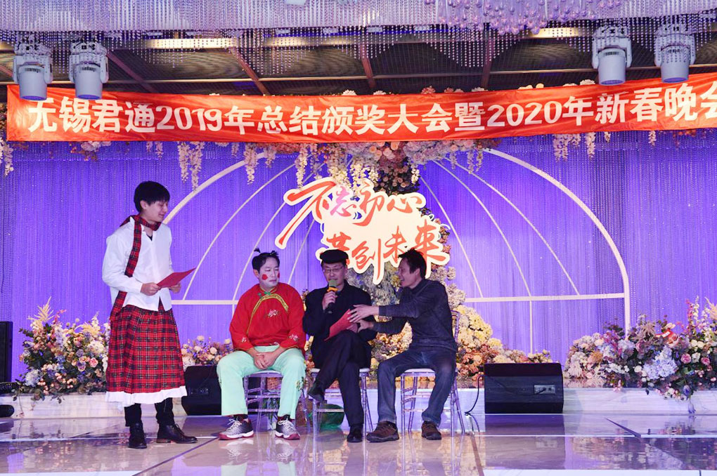 那么就让我们抓紧时间,掌声有请出市场部的朱树明、叶青海、浦斌以及我们久违的嘉宾蒋超为我们共同带来小品《不差钱》: