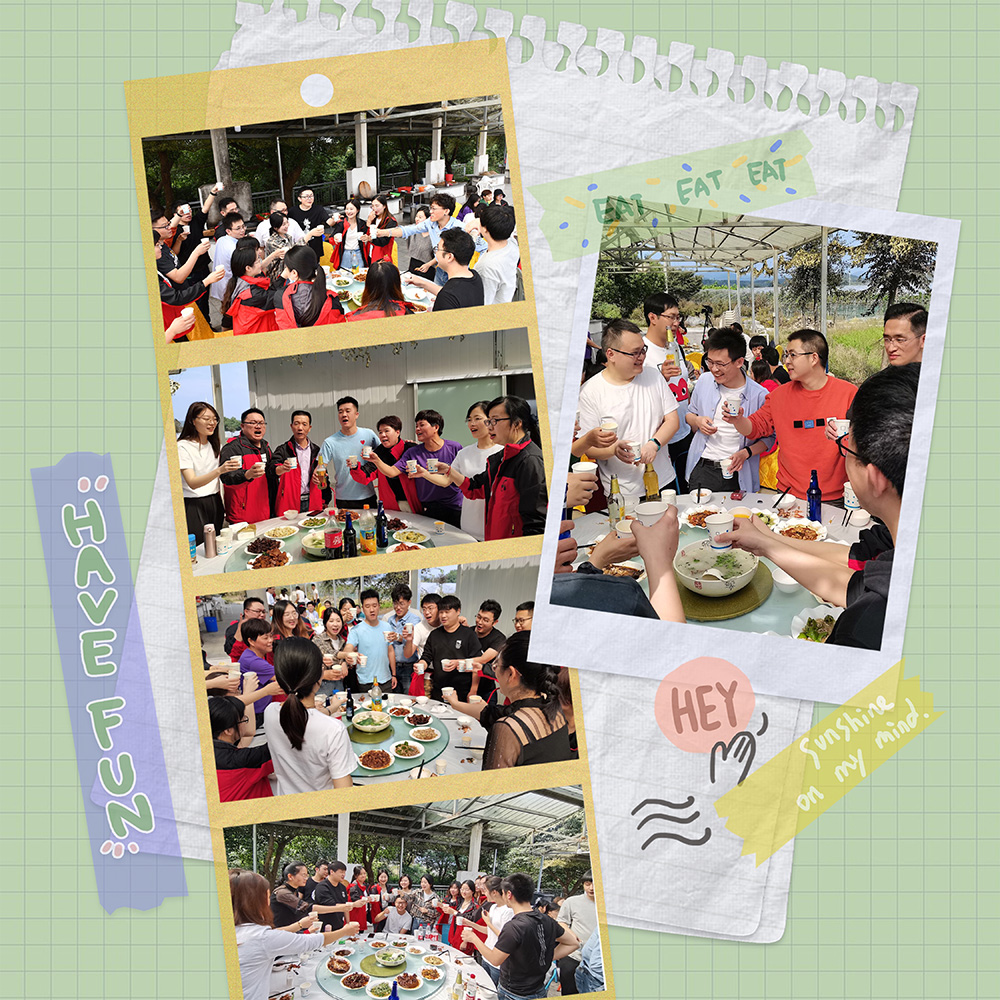 在大家一番热火朝天的忙碌中,飘香四溢的一桌桌美食,伙伴们倍感振奋、开心之情溢于言表!民以食为天,幸福的时刻就是大吃一顿了: