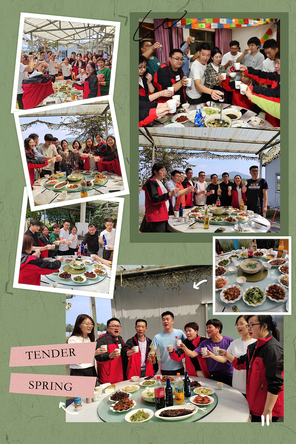 聆听完2小时的音乐盛宴,大家到达了康总为大家精心安排的宜兴金沙湾农庄,伙伴们按照分好的组一起烧土灶饭,一到土灶台,多才多艺的君通厨神、厨娘们、伙夫们争分夺秒地开始了她们的厨艺展示,不得不夸夸我们的Topsales赵经理不仅在工作中热心帮助新人、也主动帮助我们年轻的电销团队们烧了一桌美味佳肴: