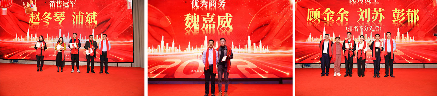 有付出有努力就会有回报,公司对2021年工作做出突出表现的人公司也给予了嘉奖,销售冠军赵冬琴和浦斌,销售亚军张洁,销售季军王国新,还有对我们君通的优秀员工顾金余、刘苏、彭郁进行了嘉奖,这是对他们2021年一年的工作的肯定,同时也是对他们未来的期望,希望我们2022年做的更好,业绩翻翻!同时也有更多的优秀员工上台领奖。