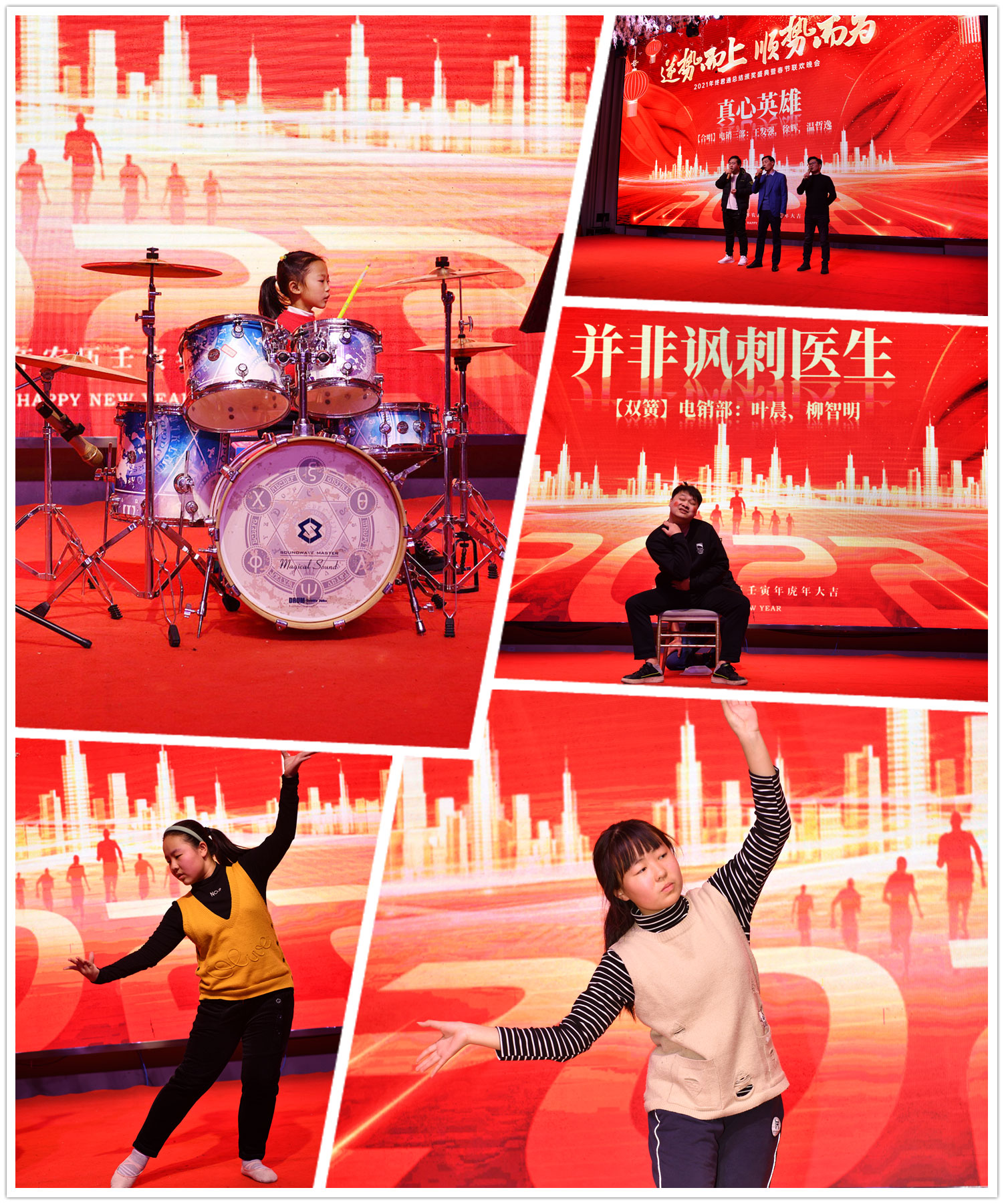商务部也是多才多艺的呢,不仅有创意性的小品节目,还有好看的舞蹈《MAMMA MIA》整齐的舞姿,统一的动作,相信他们花了不少时间去排练,电销部叶晨和柳智明带来的《双簧》只能说一年更比一年强,电销部的三位新人帅哥也给我们带来了歌曲《真心英雄》,真的是不仅人帅歌唱的也好听,就连小朋友们都个个多才多艺,沈子恒给大家带来的【架子鼓】《踏山河+像风一样自由》,高畅言小朋友的【笛子】《鹧鸪飞》,杜开成的萨克斯,顾翰中的吉他,小朋友们个个表现的都很棒,一点也不怯场,最后有尹总带领大家的压轴的节目T台秀,真的是惊艳全场,美女帅哥,每个人都有自己的招牌动作,一点也不输于正规的T台秀,君通真的是人才济济,多才多艺。