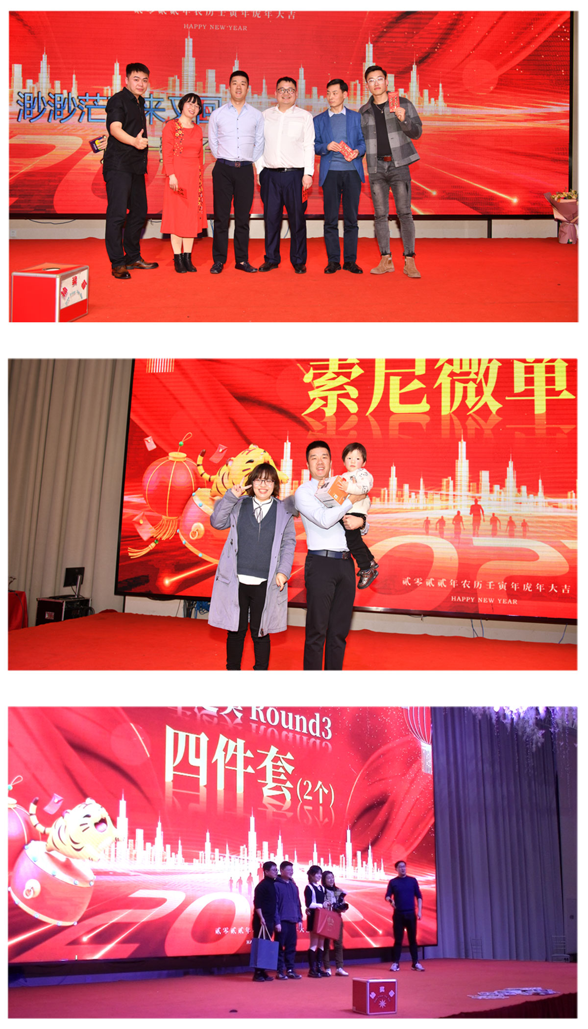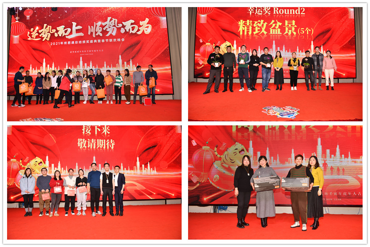 丰盛的晚宴,丰厚的礼品,是大家最期待的哦,今年康总和尹总为大家准备了很丰厚的礼品,希望大家都能抽到奖品,今年的一等奖花落在了技术部的蒋瑜娟,最后康总和尹总为了让更多的人拿奖还设置了好多现金奖,晚宴期间大家纷纷上台亮嗓子,唱出自己的拿手歌,幸福和快乐的时光总是短暂的,大家吃好玩好也嗨好了,希望2022年大家继续加油,继续服务好我们的客户,逆势而上,顺势而为,2022年我们已经做好准备,整装待发,踔厉奋发,笃行不怠,不忘初心,未来可期,无锡君通祝大家新年快乐,虎年大吉!!