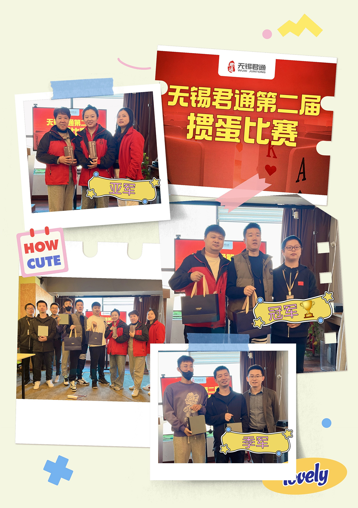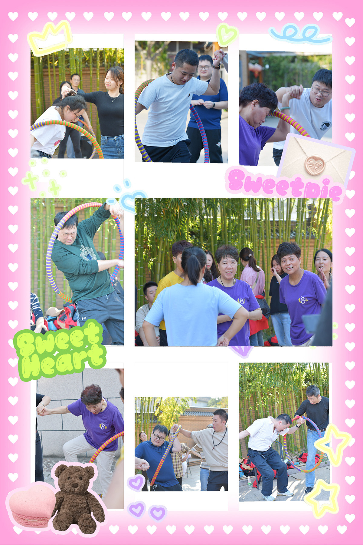 阳光和煦,微风不燥,徜徉在大自然的怀抱中,带着一份份欢喜和希冀,君通的家人们陶醉于一个又一个精彩的团队游戏:“蒙眼吃香蕉、一圈到底、跳绳、踢毽子、呼啦圈、第二届掼蛋比赛”等,妙趣无穷,令人捧腹不已: