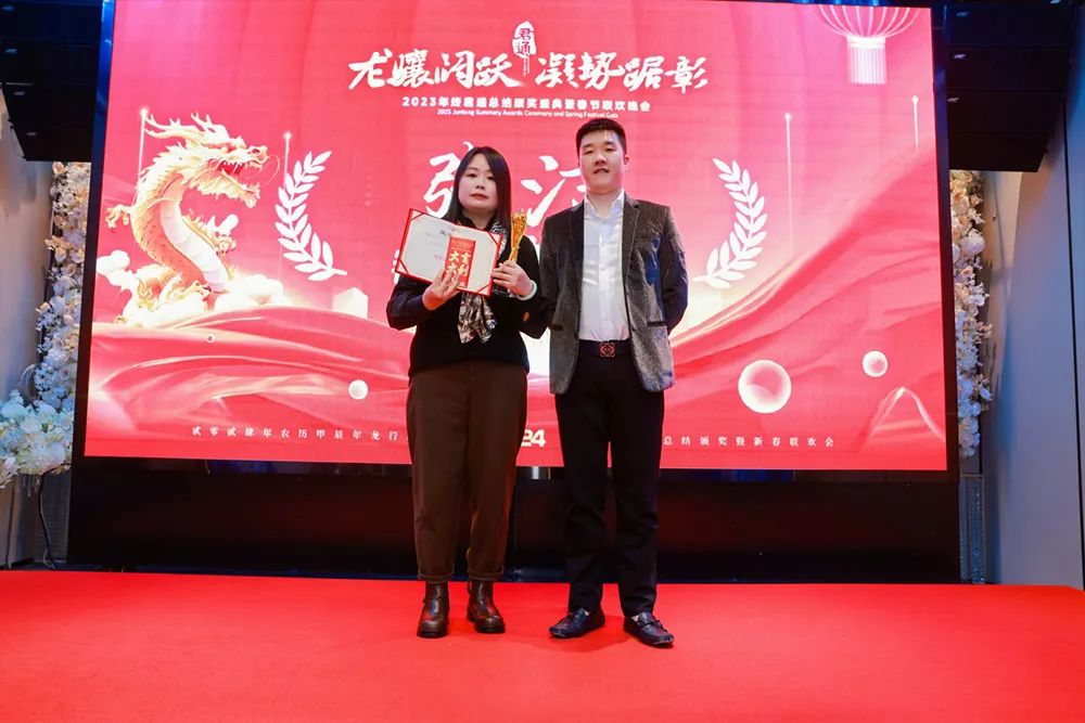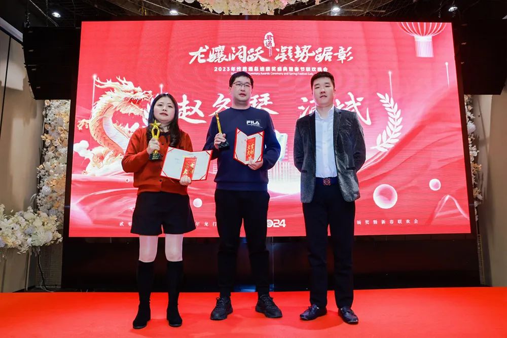当然此时此刻最重要的还是要感谢尹总康总感恩公司,也要感谢自己的勤奋和付出换来的收获,把时间放在努力上,行动在哪,收获就在哪!2024年向我们的销售精英和优秀员工们学习,希望能有更多的优秀达人站在这领奖台上!