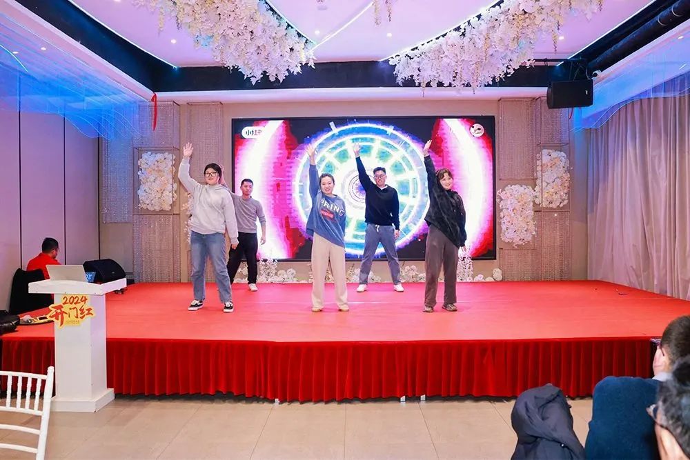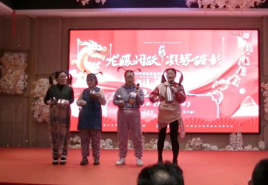 刚领略完释放天性的电销行政部舞蹈后,技术部的四大美女蒋瑜娟、马茹燕、戴钰、顾健美联手为我们带来这段三句半形式的表演《欢喜拜早年》:
