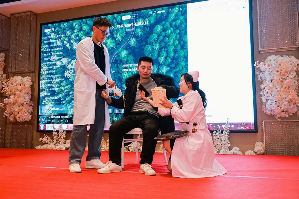 视觉盛宴后接下来就是我们一家人的年夜饭时光了,晚会的高潮最激动人心的抽奖和颁奖时刻到了,马上纪念奖、三等奖、二等奖、一等奖、特等奖、多名现金大奖一奖高过一奖都在等候着大家,话说能在年会上中奖可是喜上加喜的事,预示着他们2024年有足足的好运气,也鞭策他们在各自的岗位上发挥他们的光和热、大干一??!