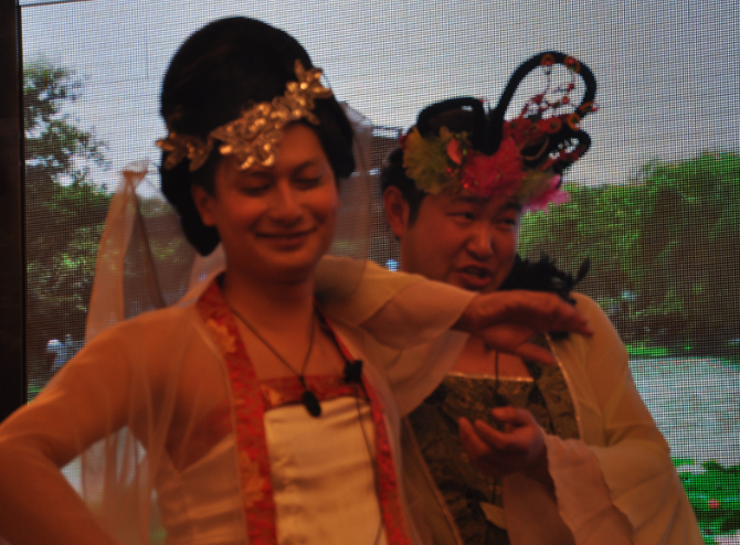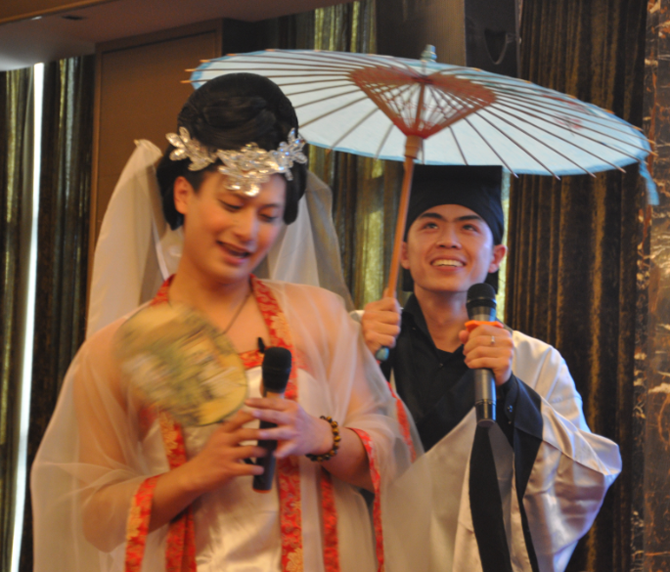 我看到“小青”,我大跌眼镜啊,我突然有点晕船的感觉,那是浦斌啊,小青婀娜多姿的身材在你身上让我们哭笑不得啊,常言道,有情人终成眷属,许仙和白娘子相遇,出演许仙的是新人叶晨,一个字,帅,唱功不寻常。终于“超哥”与许仙相会了,天上下起了小雨,我们再一次被雷到了,小青你居然是人工降雨啊,采用打农药的喷雾器,我不得不佩服“三个男人一台戏”,居然有这么好的效果。佳小品奖你们是当之无愧啊!!