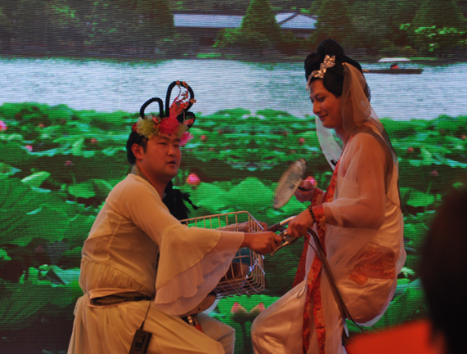 在我们焦灼的期待中他们来了---《白娘子传奇》,超哥、浦斌继续走反串路线,他们居然饰演白娘子和小青,令一阵欢呼,惊叹,我和我的小伙伴们都惊呆了,超哥你那身材,你那走姿,令多少男性女性羡慕嫉妒恨啊,我们都在怀疑你是否是在本色出演呢?的白娘子多了几份妩媚,君通唯有超哥能将其演艺的淋漓尽致。