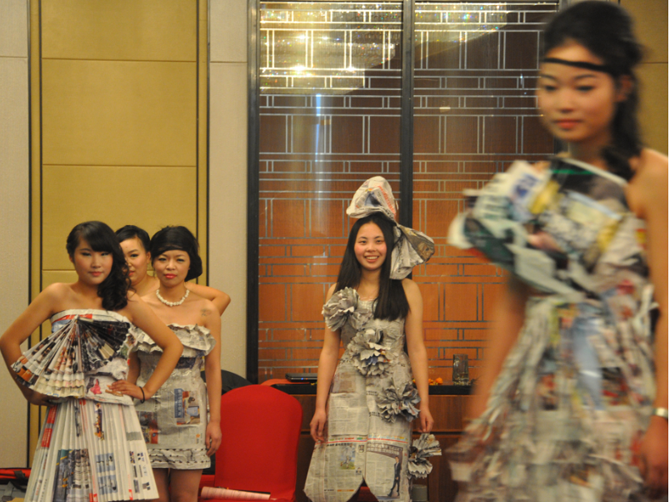 君通每一年都有创新的节目呈现在大家的眼帘,由软件部和行政部联合打造的大型服装秀节目一定让人传颂,没有采用金锣绸缎,更没有大师精心设计,她们大胆的采用报纸,经过巧夺天工的手,独具创新的展现了什么才是《花的衣裳》。我只能用四个字来形容了“美不胜收”!