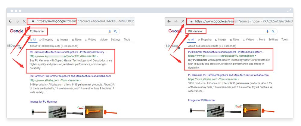 2、同一个关键词(PU Hammer)在google主站(google.com),以及各地区google分站上均获得首页排名,同时在全球主流搜索引擎yahoo、bing、yandex上也有非常好的排名