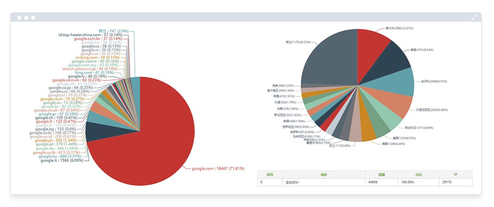 全球流量分析系统、全球询盘分析系统、主流搜索引擎排名统计系统、网站测评分析系统